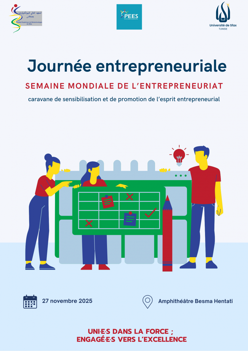 Nous avons l'immense plaisir d'accueillir Mme Donia Louizi, Directrice du PEES du Pôle de l'étudiant-entrepreneur de Sfax, à ISBS, le 27 novembre 2025 à l'Amphi Besma Hentati, à partir de 11h45.